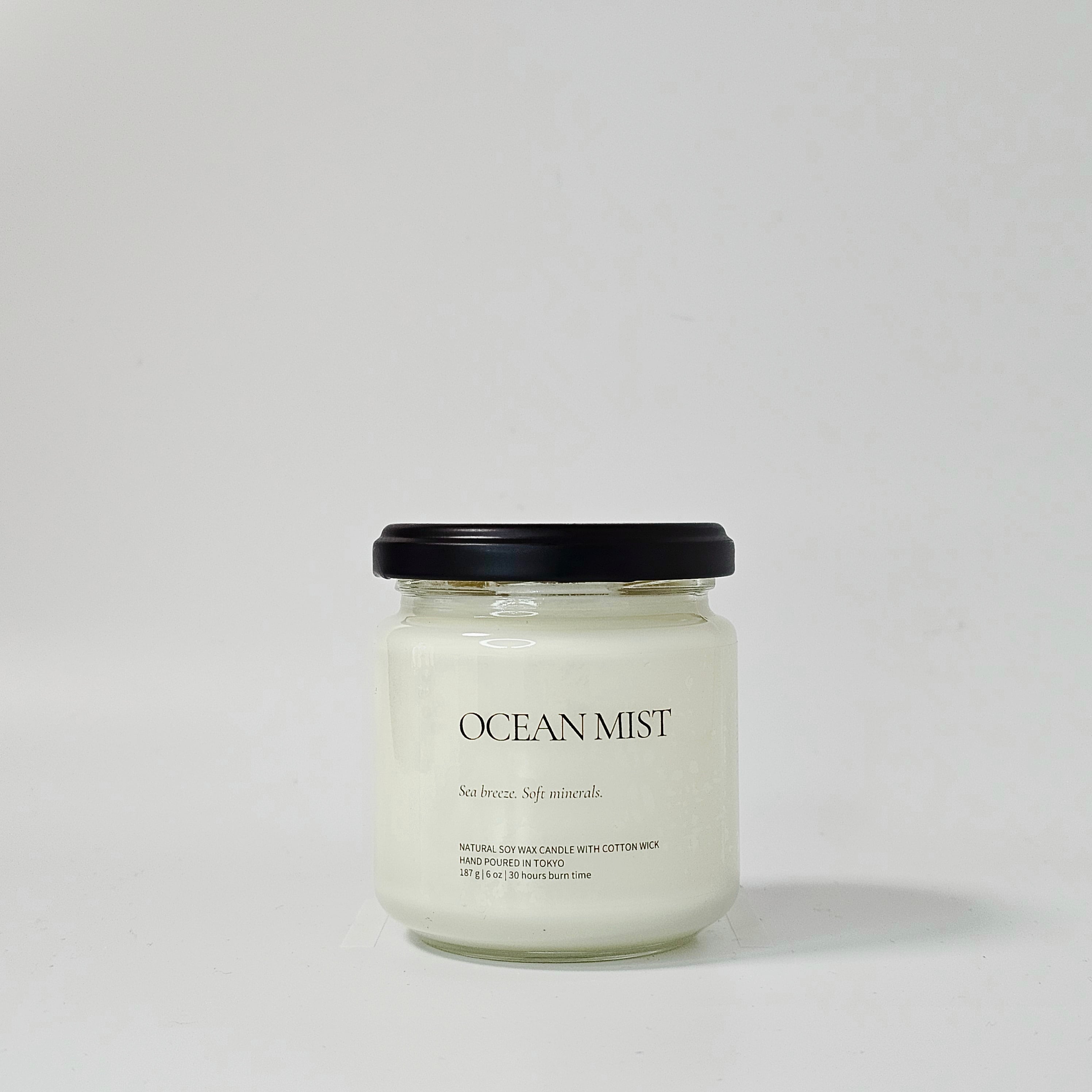 Ocean Mist(オーシャンミスト)は、シトラスとシーソルトの透明感が広がる、軽やかなソイキャンドルです。海辺を思わせる香りが、心をニュートラルな状態へ導きます。