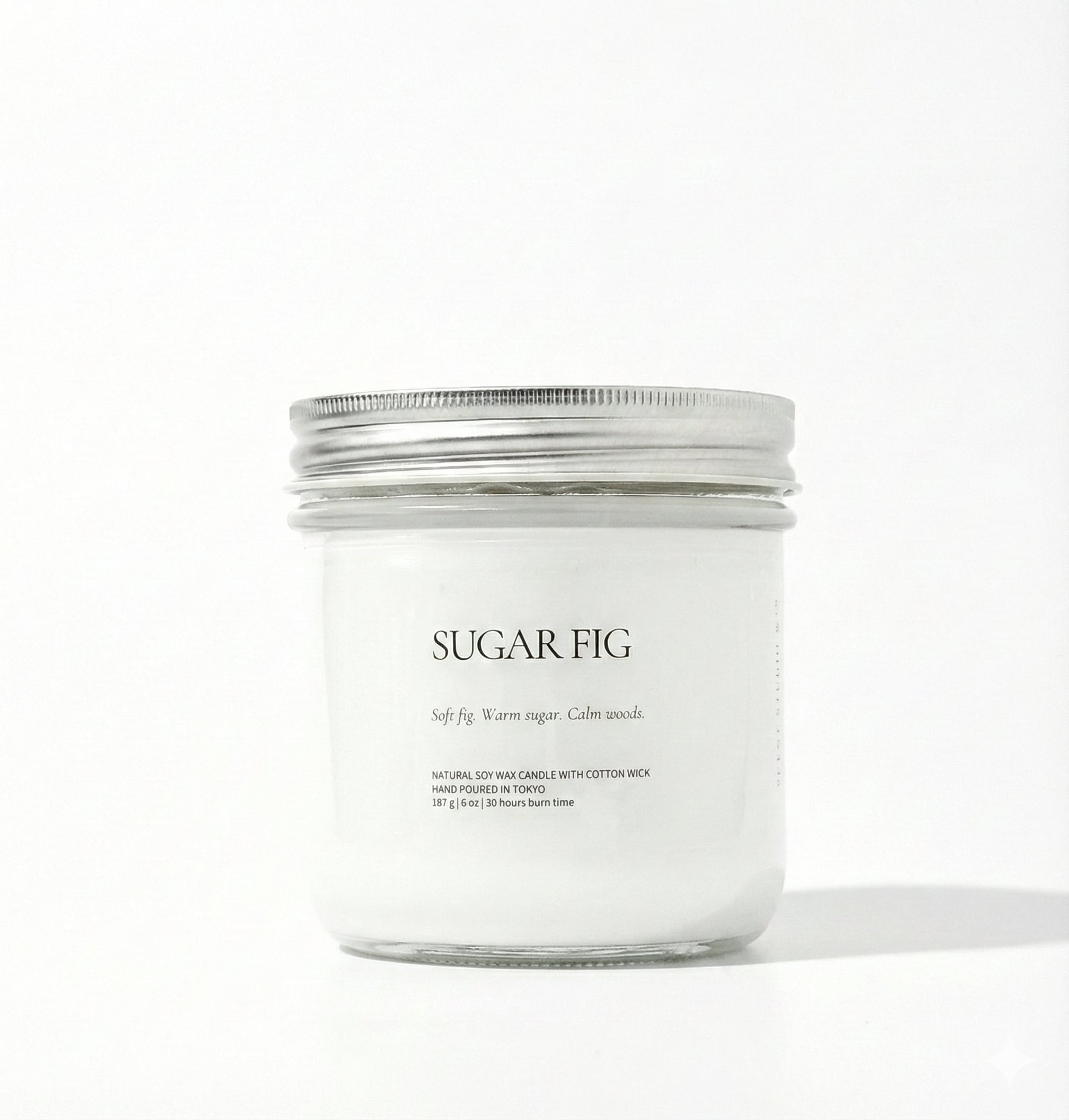 Sugar Fig(シュガーフィグ)は、フレッシュなフィグの甘さに、バニラとサンダルウッドの落ち着きを重ねたソイキャンドルです。甘さがありながらも軽やかで、空間を上品に整えます。